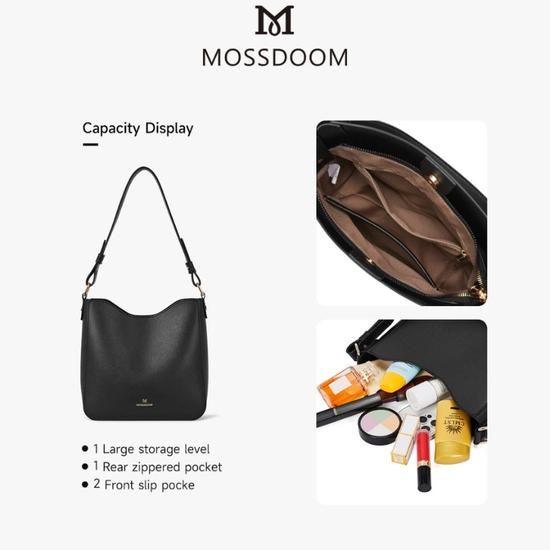 – Internal structure: Large storage area * 1; Interior decoration (storage area * 1, front compartment * 1, back zippered pocket * 1)